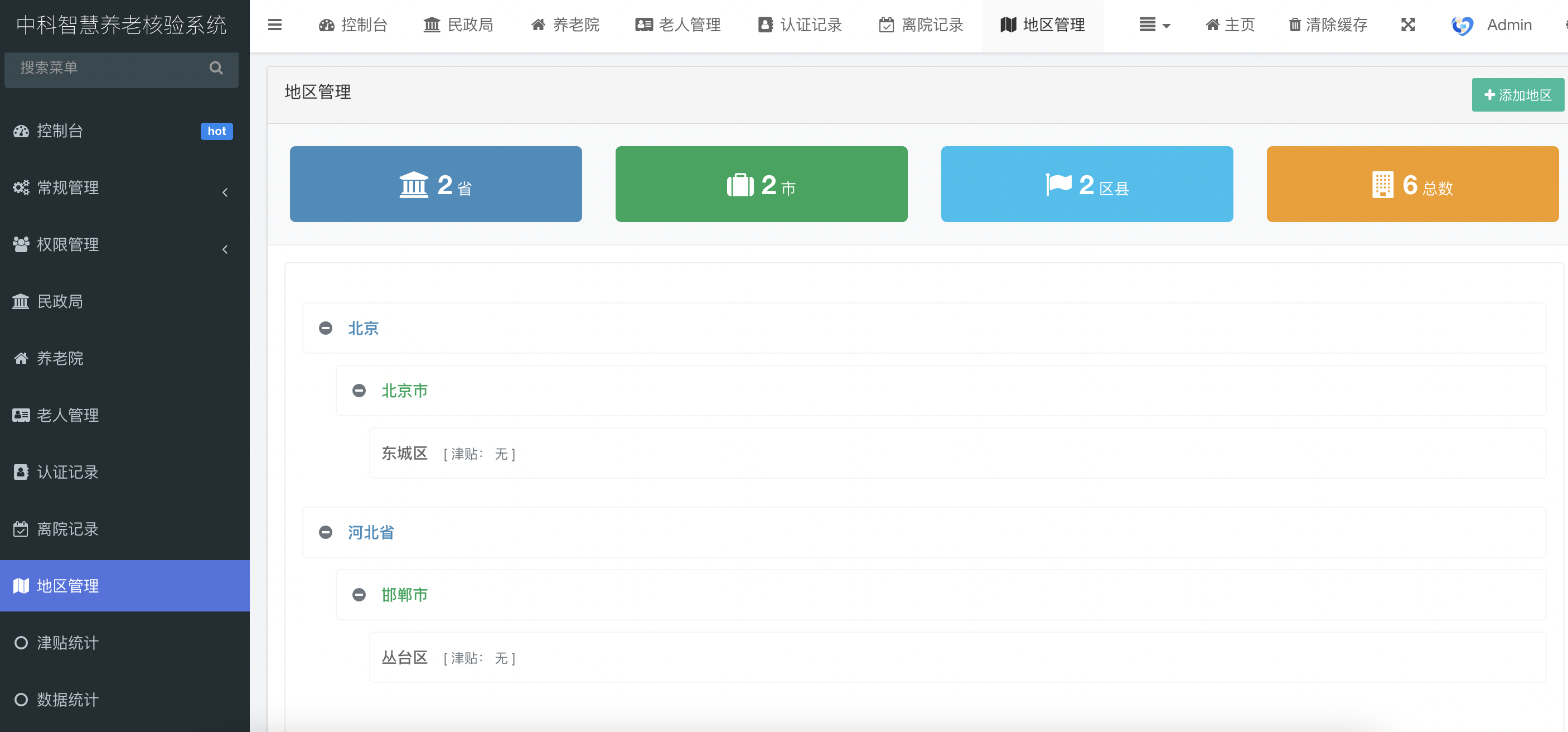養(yǎng)老院信息管理:支持養(yǎng)老院新增、編輯、刪除及管理員賬號設置。